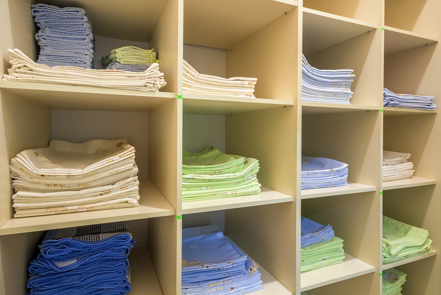 - For Families: Color-coded bins, white for bedding, blue for bath, beige for guest linens.